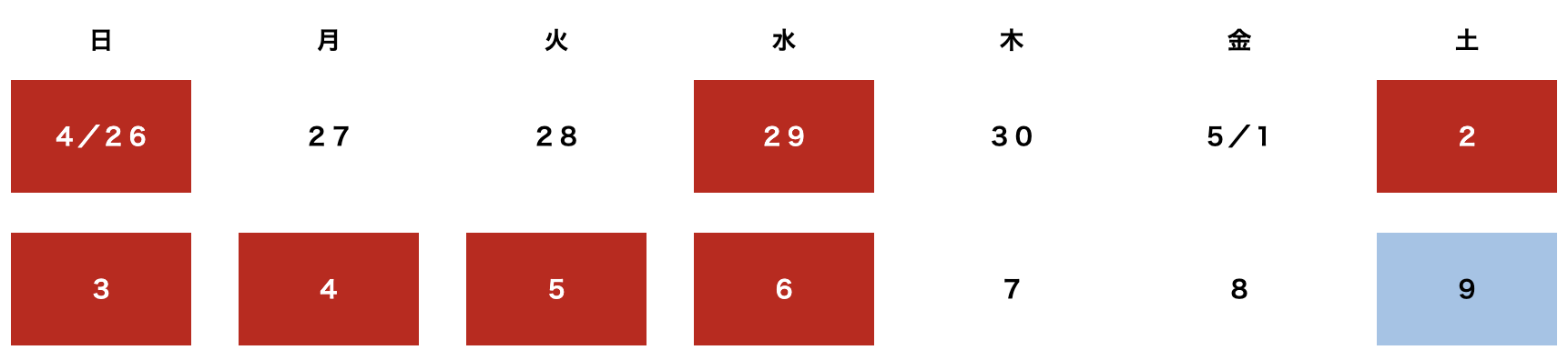 誠に勝手ながら、下記の期間においてGW休業とさせていただきます。