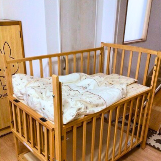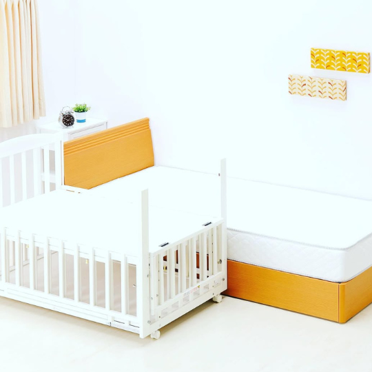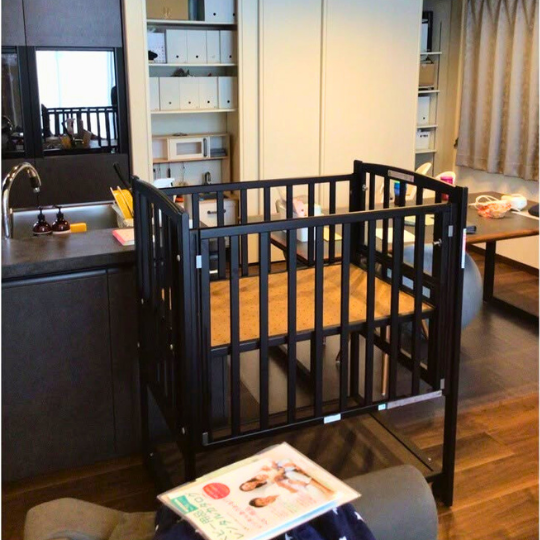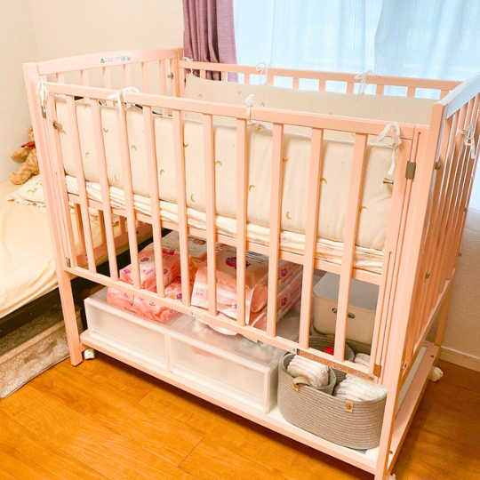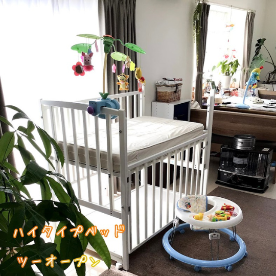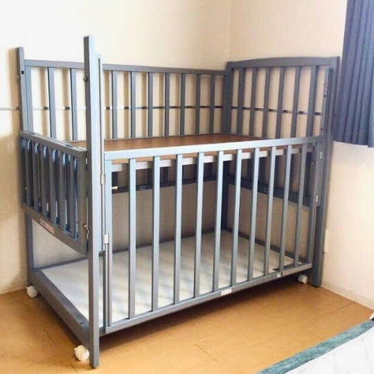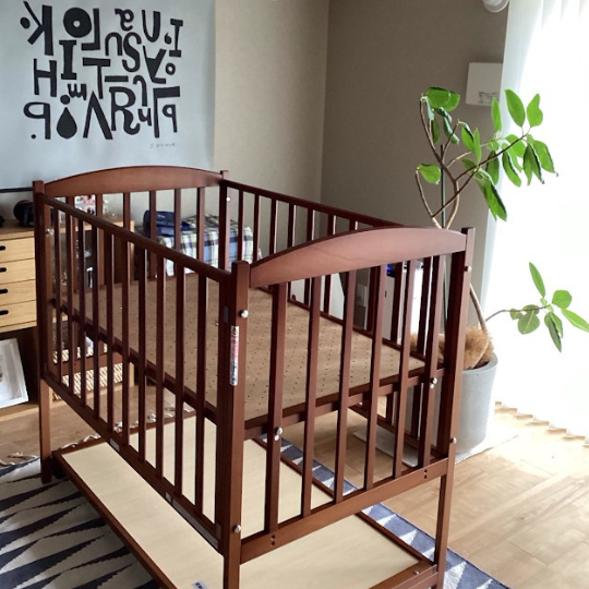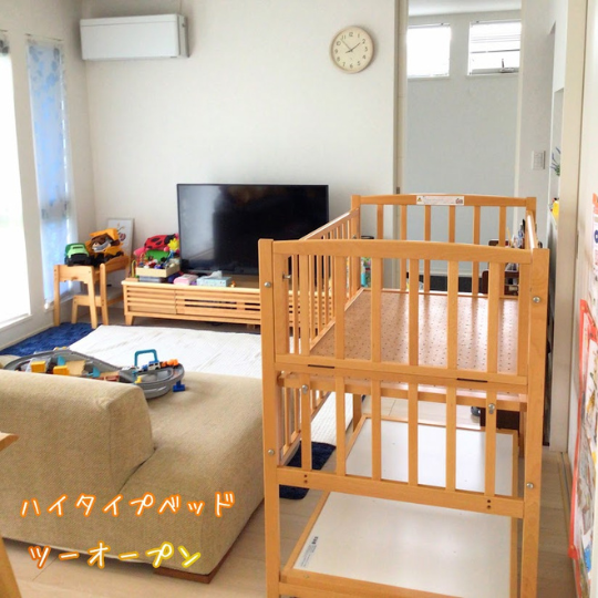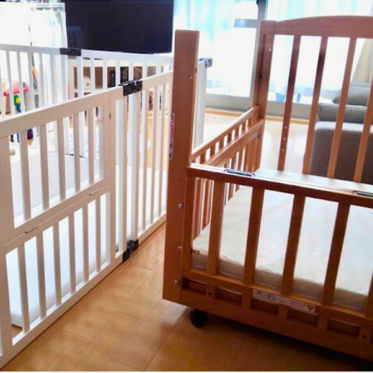 大人用ベッドに横付けできるタイプのものを探したらヤマサキさんのものにたどり着いた。夜は寝室で大人用ベッドに、日中はリビングへ移動させて常時使わせてもらった。